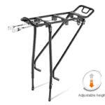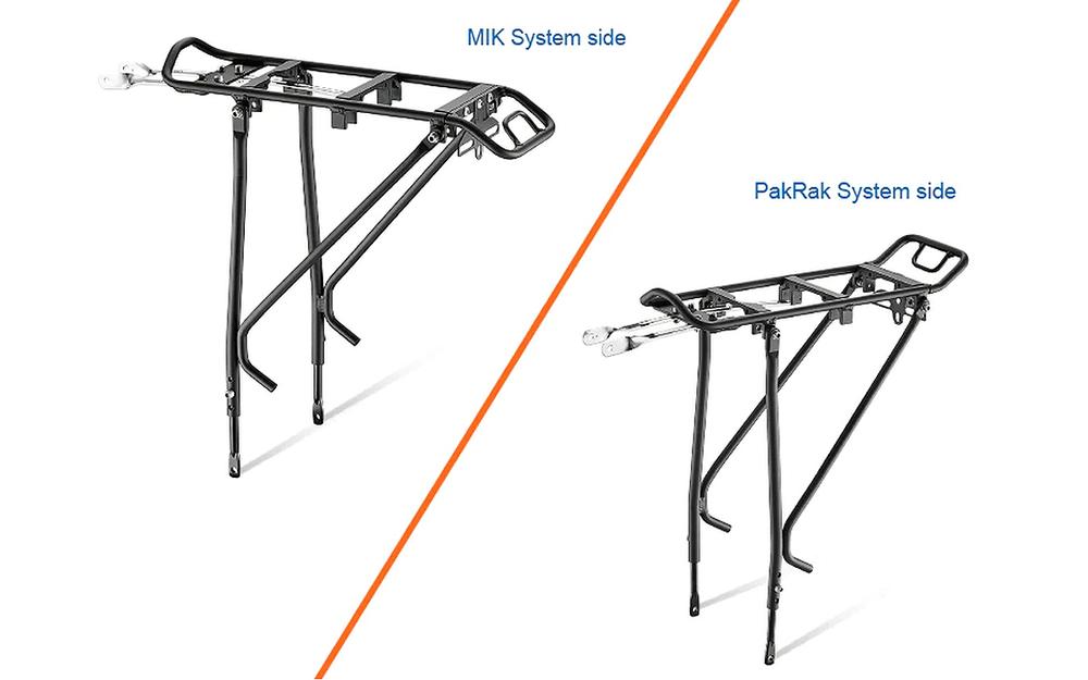 Piemērots lielākajai daļai 26″-29″ rāmju, regulējams, konvertējams kravas paliktnis ļauj uzstādīt MIK vai PakRak piesprādzējamus somas, Disc + V-Brake, alumīnijs, melns, svars 800 g, maksimālā slodze 25 kg