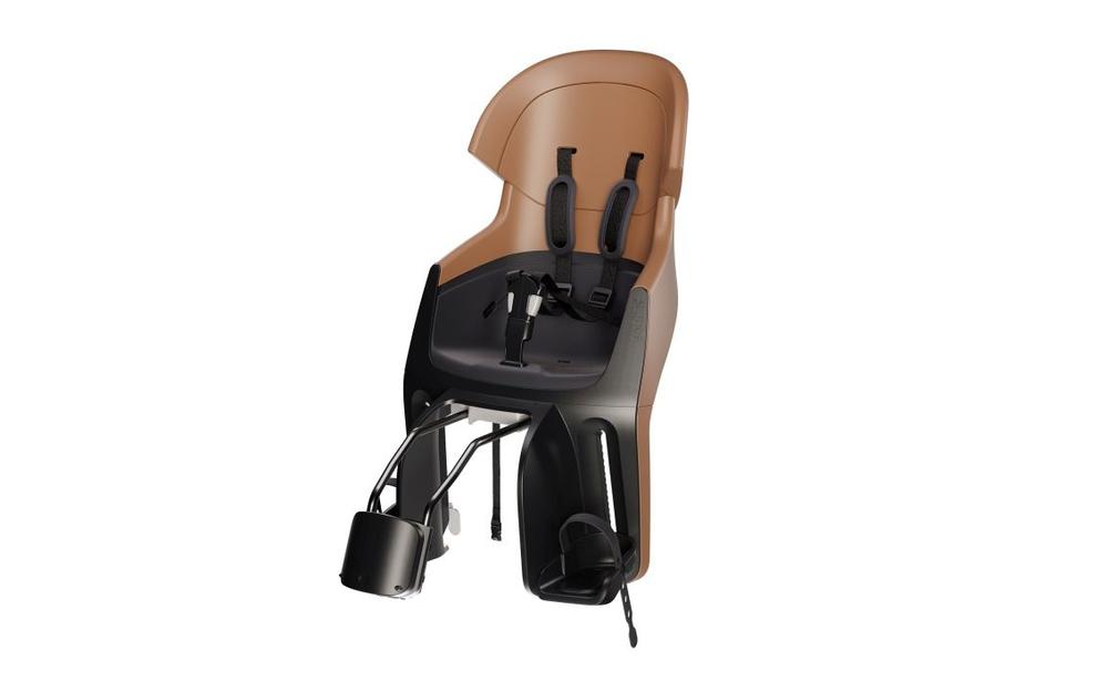 Bērna svars līdz 22 kg, vecums no 9 mēnešiem līdz 6 gadiem, augums līdz 110 cm, brūns, rāmja stiprinājums 24-40 mm, 26″-28″ velosipēdiem
