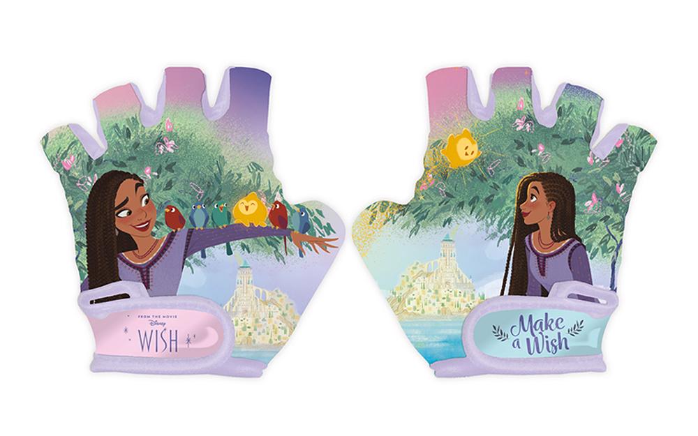 Bike gloves are made of durable materials with colorful print, decorated with characters from favorite Disney cartoons. Gloves have Velcro straps allowing to fit onto baby’s hand. The bottom of the glove is trimmed by a special material that provides good cushioning and allows the child to hold the steering wheel safely.