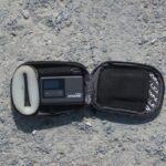 needle, USB-C charging cable, waterproof storage bag, wrist lanyard, and user