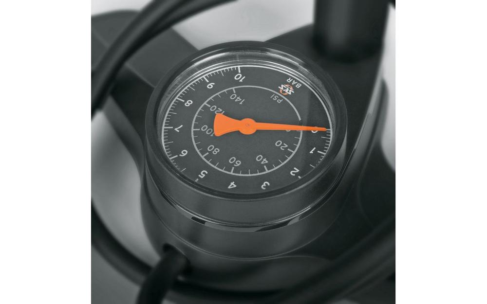 The SKS AIRLITE floor pump combines high-quality materials with sophisticated functionality. The large precision pressure gauge allows optimum readability of the tyre pressure up to 10 bar. With its steel tube and robust plastic base, the floor pump guarantees excellent stability while pumping. The ergonomically shaped handle provides a secure grip and makes it easier to operate.