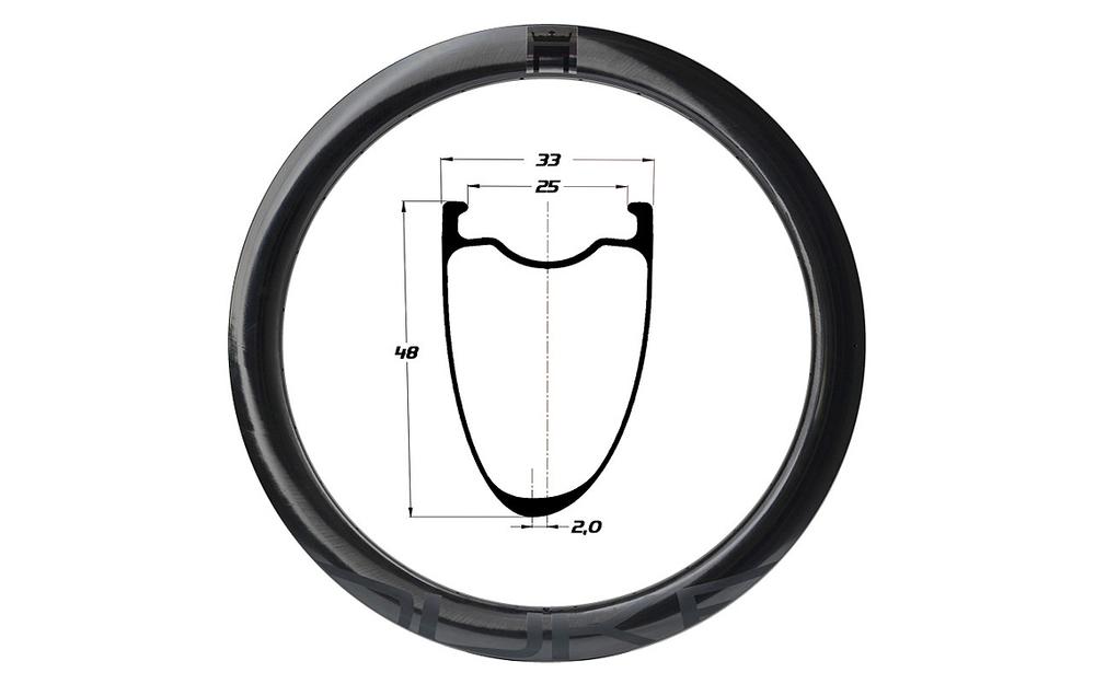 622 x 25, 28H, carbon, outer width 31.5 mm, profile depth 48 mm, tubeless clincher, 2 mm offset, 546 ERD, 425 g, max weight 125 kg