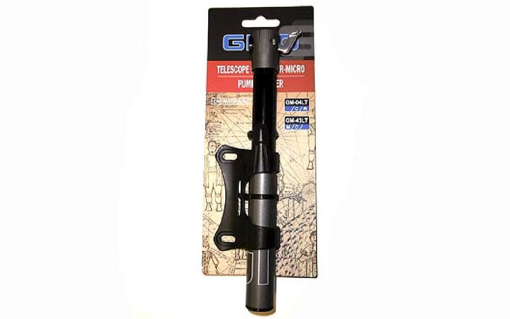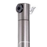 120 psi-8 atm, sabīdāms, garums – 12,6 cm, tureklis stiprināšanai pie rāmja, universāls uzgalis, alumīnijs
